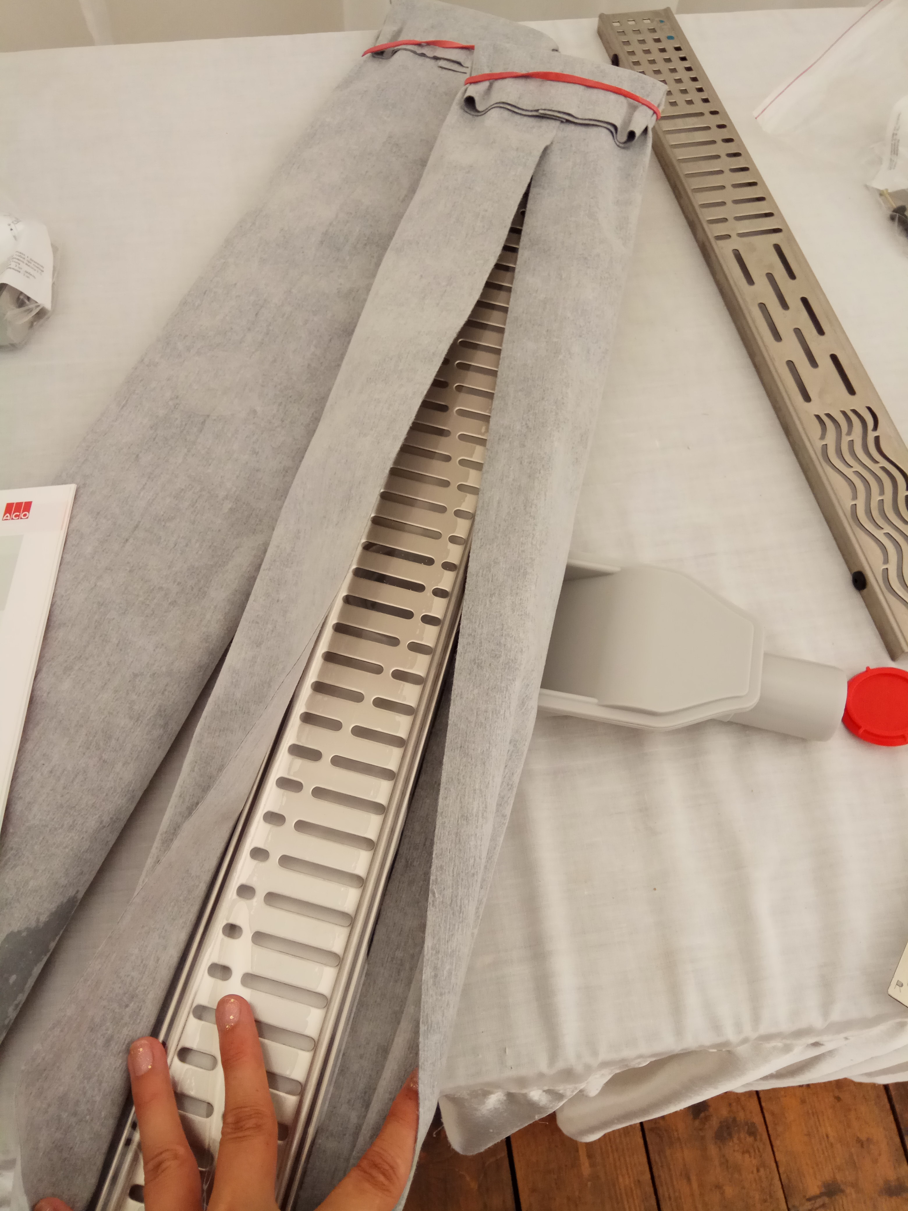 К преимуществам данного сета можно отнести наличие гидроизоляционного полотна и ножек. В качестве дополнительной опции можно установить сухой затвор, при чем на любой стадии установки лотка.