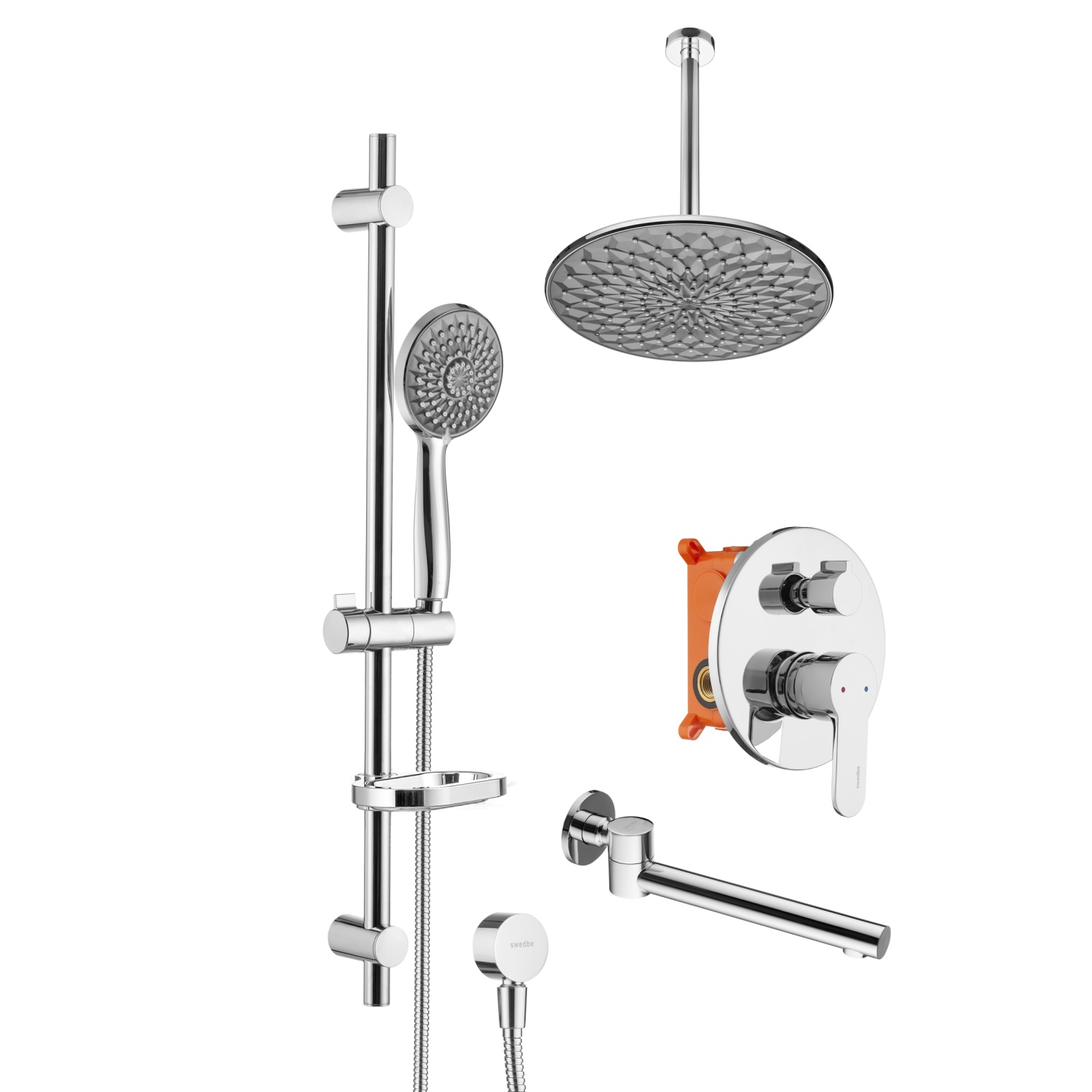 Душевой комплект со встраиваемым смесителем (с монтажным боксом), верхним душем и поворотным изливом Swedbe Platta 5543G1