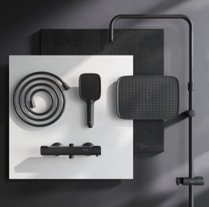 Душевая система AM.PM Func F078F422 стойка с тропическим душем, термостатом, смесителем, черная