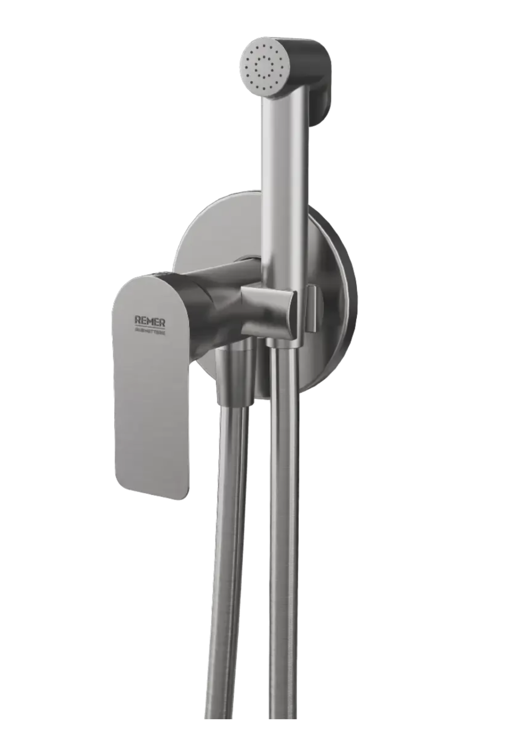 Гигиенический душ со смесителем скрытого монтажа REMER Infinity XV (арт. I65WXV) – это современное решение для вашей ванной комнаты. Комплект включает в себя все необходимое для установки: смеситель скрытого монтажа, душевой шланг и скрытую часть. Выполненный в цвете никелированная сталь (XV), этот гигиенический душ идеально впишется в любой интерьер.