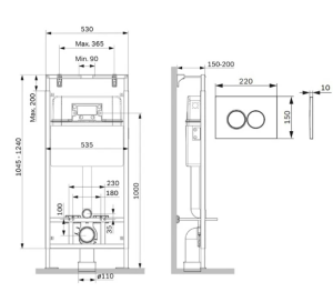 Инсталляция для подвесного унитаза бренда AM.PM коллекции MasterFit с механическим управлением смыва включает в себя максимально полный комплект поставки: крепления, патрубки, звукоизолирующую прокладку, механическую двухрежимную клавишу смыва. Размер инсталляции(Ш/Г/В): 530x150-200x1045-1240 мм Размер клавиши (Ш/Г/В): 215x10x145 мм. Цвет и материал: синий каркас из нержавеющей стали, белый бачок из ABS-пластика, механическая клавиша белая глянцевая. Форма кнопок: прямоугольные.