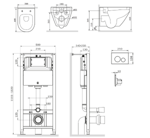 Готовый комплект к установке: система инсталляции для подвесного унитаза AM.PM Pro I012704.9051 с пневматической клавишей, подвесной унитаз AM.PM Spirit 2.0 C701700WH с сэндвич-сиденьем C707857WH.