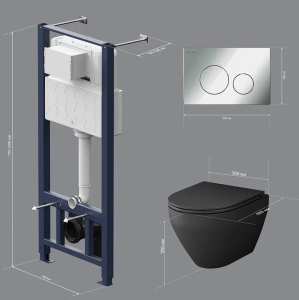 Унитаз подвесной безободковый с инсталляцией AM.PM Spirit V2.0 IS49051.701700MB сиденьем микролифт, хром пневм. клавишей