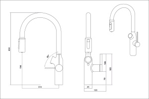 Для мойки: Oulin, Для мойки: PVD (Нержавеющая сталь), Конфигурация: С подключением фильтра для воды, Конфигурация: С выдвижным изливом, Подключение фильтра питьевой воды: Да, Гарантия: 5 лет, Высота смесителя: 434 мм
