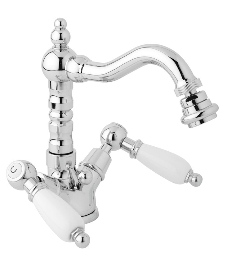 Артикул:FIRST-BS2-03/24-Bi. Наименование:Смеситель для биде с донным клапаном. Исполнение:Золото 24 карат. Ручки:Белые.