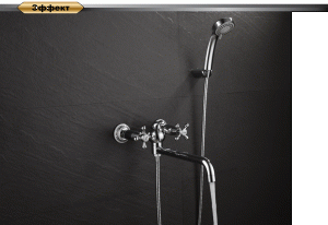 Смеситель, эксцентрики-2шт., декоративная шайба (отражатель)-2шт., шланг душевой, излив, лейка душевая-3 режима, держатель душевой лейки, паспорт, брендовая сумка.