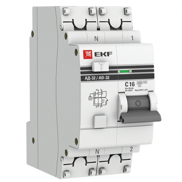Купить «EKF PROxima АД-32 Диф. Автомат (C) 1P+N 16А/30мА тип АС 4,5кА , электронный» недорого легко, фото, видео, доставка. Для заказа просто позвоните по телефону