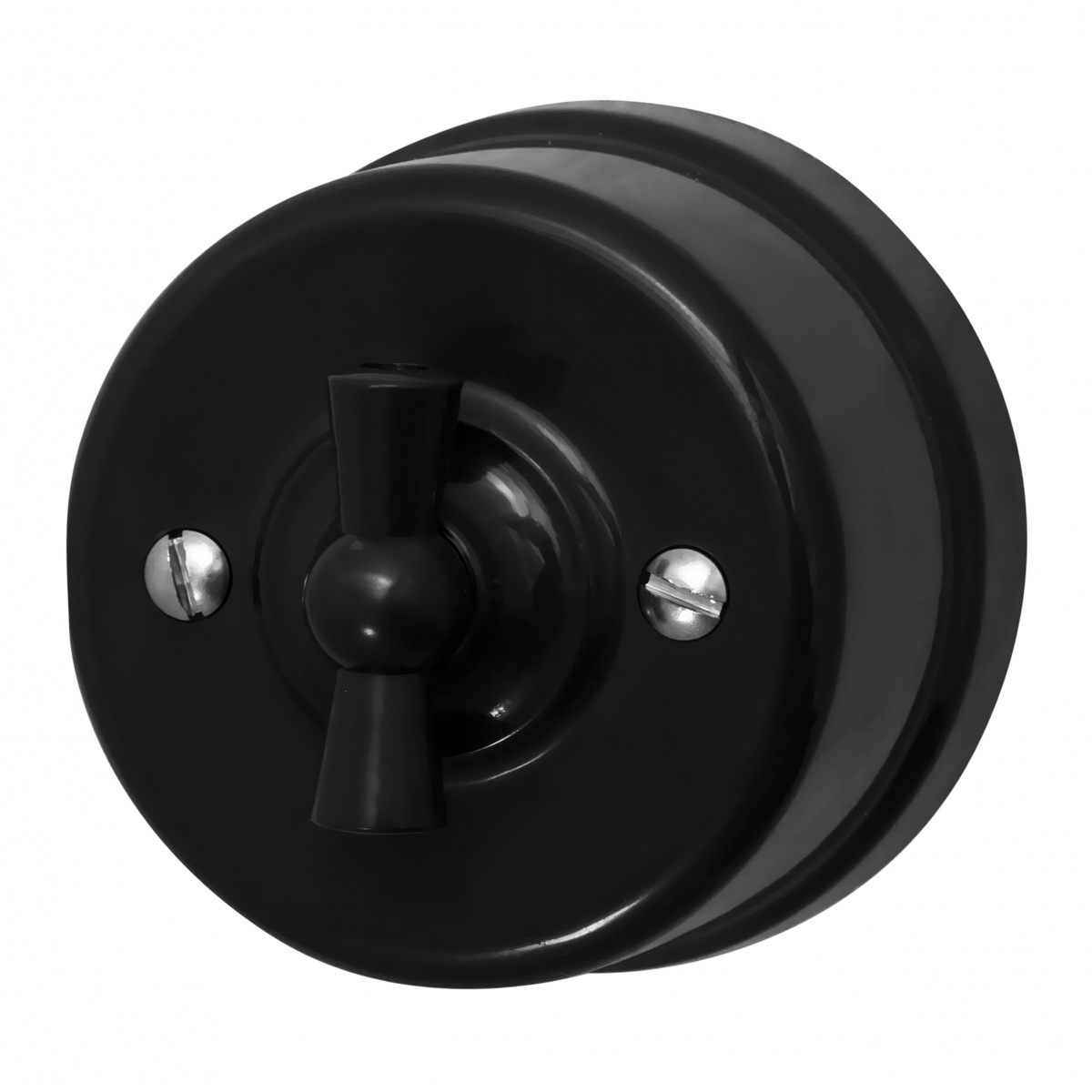 Винтаж кардинально отличается от других направлений, такой стиль внешне стилизован под старину: по материалам, цвету, форме и текстуре. Выключатели в данном исполнении характеризуются округлой формой, выпускаются в черном или наоборот, в белом цвете. Механизм у таких моделей рычажного типа, кнопочного, либо оснащен поворотным переключением. Такие комплектующие используются для отделки помещений в стиле прованс, лофт или кантри.