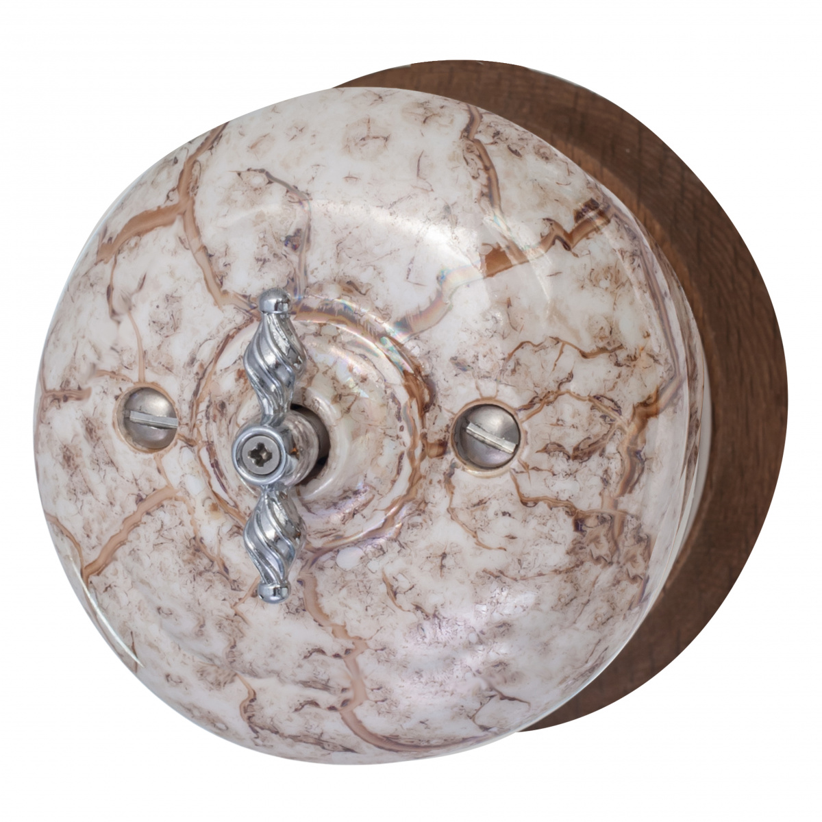 Выключатель BIRONI перекрестный, 10А, 250В, 73*73*50 мм (в комплекте с одноместной круглой рамкой цвет - Мрамор золото) B2-203-090/18